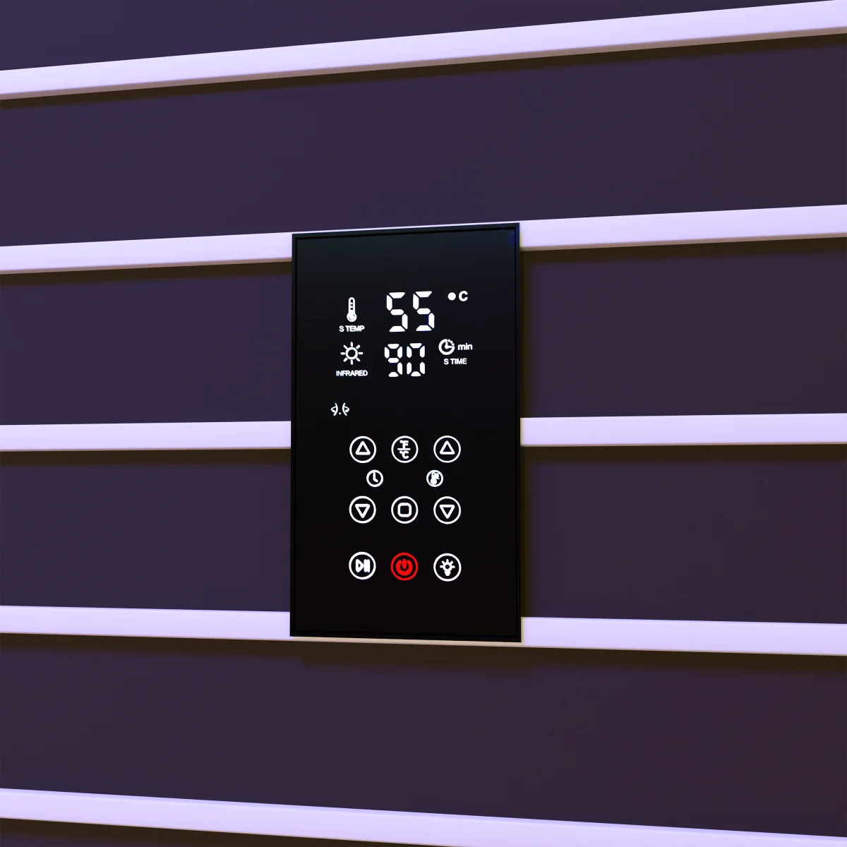 This sauna incorporates advanced full-body red light panels aimed at enhancing skin health, optimizing sleep quality, and alleviating muscle and joint discomfort. Its efficient heating system includes high-output near-infrared heaters engineered for fast, therapeutic warmth distribution while maintaining an elegant aesthetic with smooth rounded edges and a sleek exterior finish.